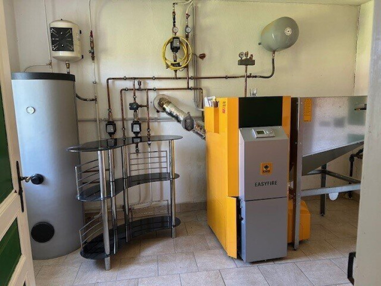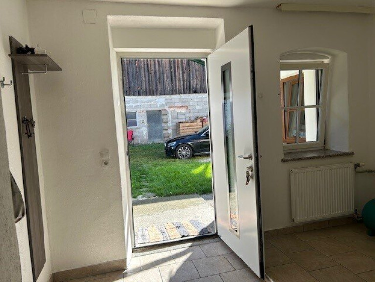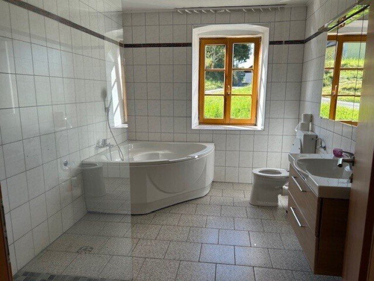 Es gibt auch noch eine Garage, die dazu gehört. Das restliche Wirtschaftsgebäude könnte für kleinformatige Tierhaltung genutzt werden. Um das Haus erstreckt sich ein Garten, der auch viele Möglichkeiten für Hobbies bietet. Vor dem Haus ist die Terrasse, die durch ihre geschützte Lage für Privatsphäre sorgt.