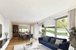 Fliesen, Parkettboden, Steinboden, Fußbodenheizung, Zentralheizung, Personenaufzug, Südbalkon, Bad mit Fenster, DV-Verkabelung, Parkplatz, Garage, Swimmingpool