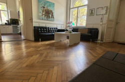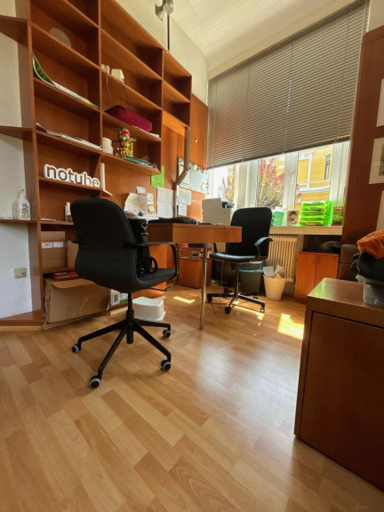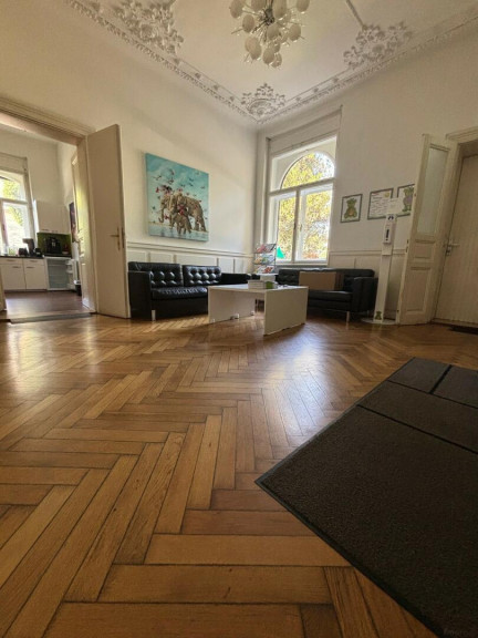 Dieses stilvolle Büro besticht durch seine wundervoll gestaltete Decke im Eingangsbereich und schönen hohen Wände. Aufgeteilt in sechs helle und gut geschnittene Zimmer, bietet es vielfältige Nutzungsmöglichkeiten – ob für Einzel- oder Teamarbeit.
