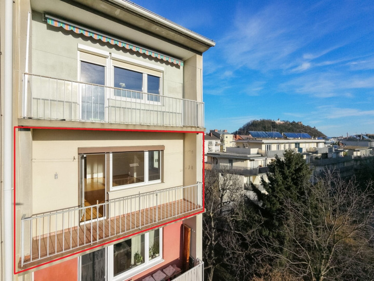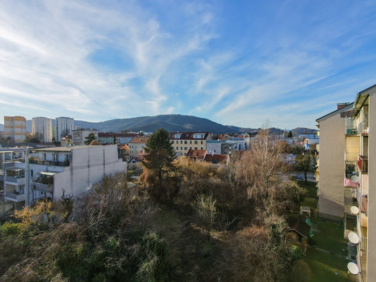 Ein besonderes Highlight ist die dreiseitige Süd-Ost-West-Ausrichtung der Wohnung in Kombination mit der Lage im vierten Obergeschoss. Der atemberaubende Panoramablick wird Sie begeistern: Die Aussicht reicht vom Grazer Schlossberg über den Plabutsch bis hin zur Burgruine Gösting.
