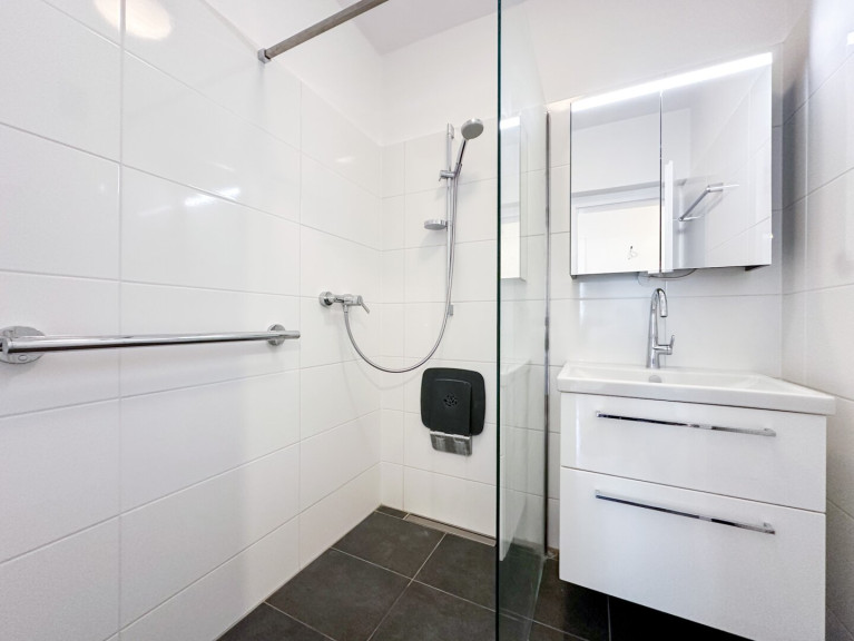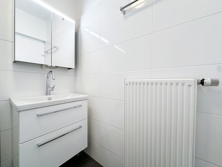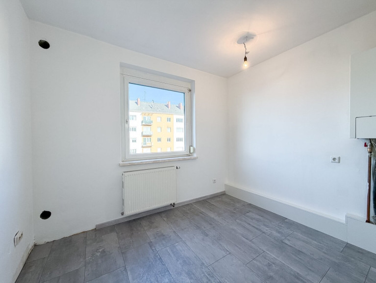 Über den geräumigen Vorraum erreichen Sie die großzügige Küche, welche über ein Fenster verfügt und Ihnen genügend Platz für Ihre neue Einbauküche inkl. Essbereich bietet. Das 2020 sanierte Badezimmer ist mit einer modernen Dusche und einem neuwertigen Waschtisch samt Spiegelschrank ausgestattet und liegt direkt neben dem separat begehbaren WC.