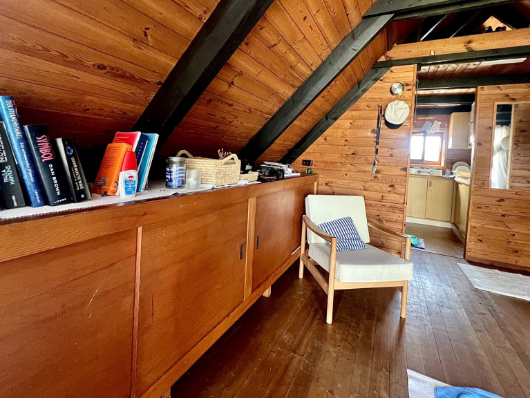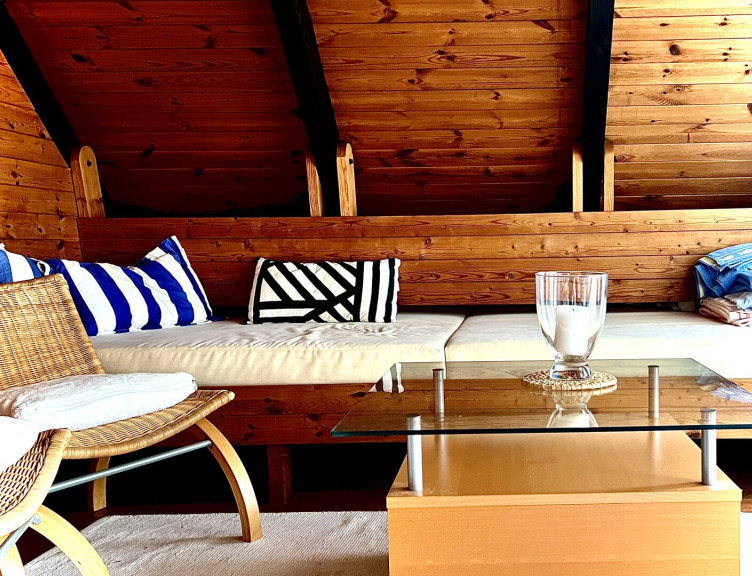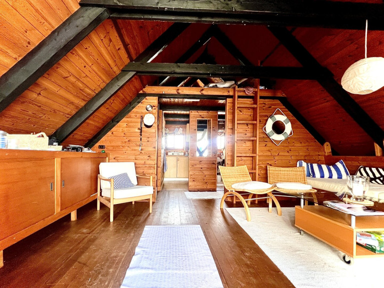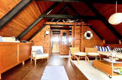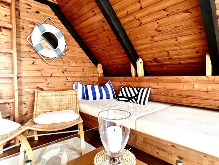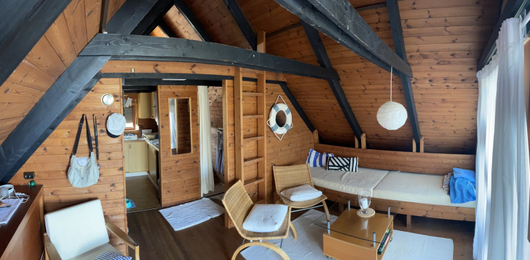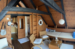 Über eine Leiter erreicht man den Spitzbogen, der sich ebenfalls als Schlafraum eignet.