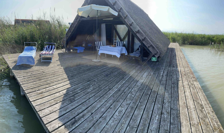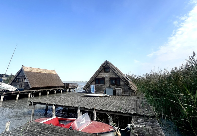 Die Liegenschaft befindet sich auf einem ca. 518 m2 großen Grundstück und bietet einen traumhaften Blick auf den offenen See Richtung Illmitz und Neusiedl. Sie erreichen die Hütte mit einem E-Boot in ca. 15 Minuten (je nach Stärke des E-Bootes) vom Ruster Hafen.