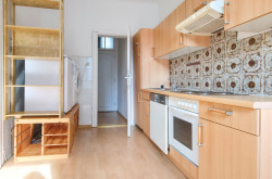 Die Küche ist direkt vom Vorraum aus begehbar, funktional eingerichtet und verfügt über einen Herd mit 4-Platten Kochfeld und Backrohr, einen Dunstabzug sowie einen Geschirrspüler. Die Wasseraufbereitung in der gesamten Wohnung wird durch eine Gastherme hergestellt, welche sich im Badezimmer befindet.