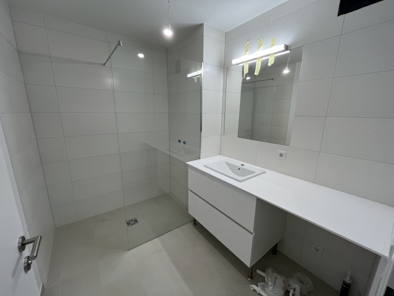 Parkett, Fliesen, Einbauküche, Dusche