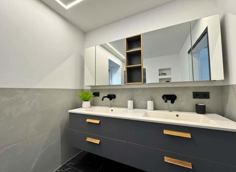 Diese charmante Wohnung im ersten Obergeschoss eines gepflegten Mehrparteienhauses vereint stilvolles Wohnen mit großzügigem Raumangebot. Auf rund 112 m² Wohnfläche erwarten Sie helle, gut geschnittene Räume mit hochwertiger Ausstattung wie Parkettböden, Fußbodenheizung und einer modernen Wohnküche. Ein besonderes Highlight bildet die traumhafte, über 125 m² große Terrasse mit idyllischem Blick ins Grüne und auf die umliegende Bergwelt – der perfekte Ort zum Entspannen oder Feiern.