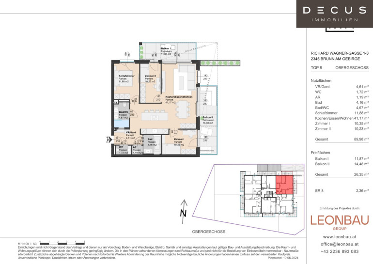 Für weitere Informationen und Besichtigungen steht Ihnen gerne Herr Ing. Nicolas Putzlager unter der Mobilnummer +43 660 302 61 70und per E-Mail unter putzlager@decus.at persönlich zur Verfügung.