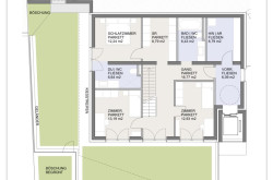 Eine Treppe führt in das untere Geschoß des Hauses - zum Schlafen und Entspannen. Jedes der drei Schlafzimmer ist über eine Balkontüre mit dem Garten verbunden – vom Bett aus genießen Sie hier den ungetrübten Ausblick ins Grüne. Entspannung pur bietet auch das Badezimmer, wo Sie nach einem anstrengenden Tag in ein heißes Bad eintauchen können. Eines der Schlafzimmer ist übrigens als Masterbedroom mit einem eigenen Schrankraum und einem separaten Badezimmer ausgestattet.