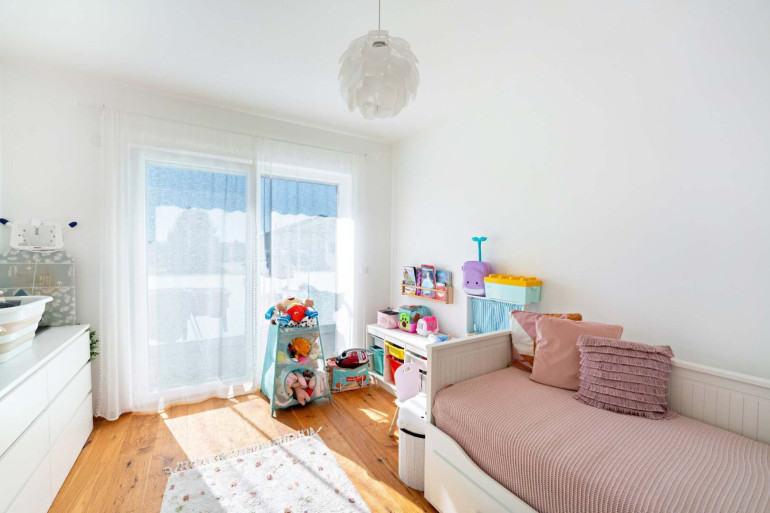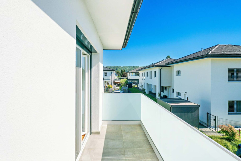 Dieses stilvolle Reihenhaus wurde Ende 2022 fertiggestellt und präsentiert sich in neuwertigem Zustand. Auf rund 106 m² Wohnfläche bietet es ein durchdachtes Raumkonzept mit insgesamt 4 Zimmern: Ein großzügiger Wohn-/Essbereich mit offener Küche im Erdgeschoss sowie drei Schlafzimmer im Obergeschoss, von denen zwei einen direkten Zugang zum südostseitigen Balkon haben.