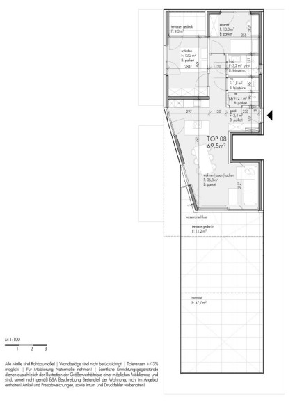 Top 08 ist die einzige Penthousewohnung der Villa Viola und befindet sich somit Dachgeschoß der Wohnanlage. Die luxuriöse 3-Zimmer-Wohnung mit 2 Terrassen, misst eine Nutzfläche von rd. 71m² zzgl. den großzügigen Außenflächen. Nach Südwesten ausgerichtet gelangt besonders viel natürliches Tageslicht in Ihr neues Zuhause.