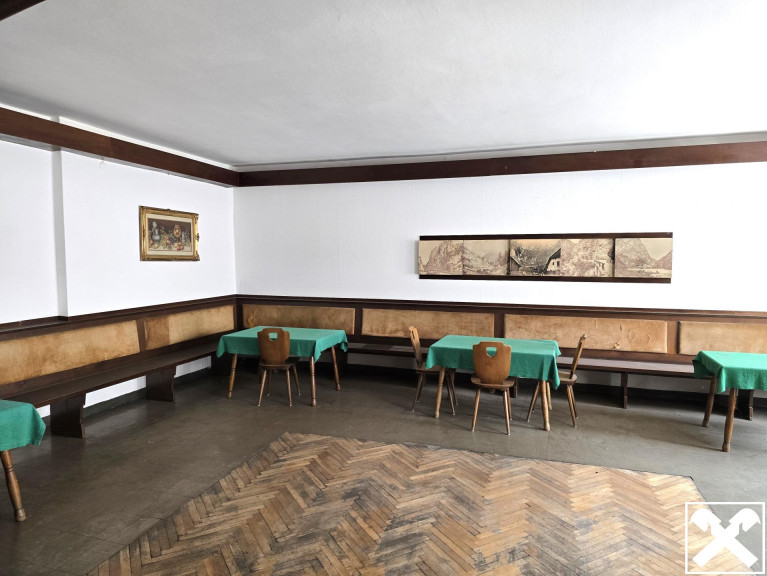 Gastraum, Speiseraum, Halle, Gang, Abstellraum, Kegelbahnen, WC-Anlagen.