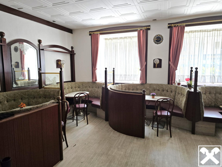 Vorraum, Stiegenhaus, Gastraum, Espressostüberl, Küche, WC-Anlagen, Kühlraum, Heizraum, Vorplatz, Spüle, Gang, Vorratsraum, 2 weitere Räume.