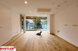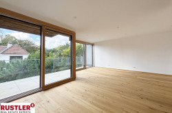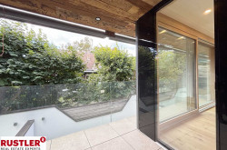 Ein besonderes Highlight ist die durchgehende Fensterfront, die nicht nur architektonisch beeindruckt, sondern auch für eine optimale natürliche Belichtung sorgt. Der lichtdurchflutete Wohn-/Essbereich schafft ein offenes, einladendes Ambiente mit direktem Zugang zur großzügigen Loggia – ideal für entspannte Stunden im Freien.