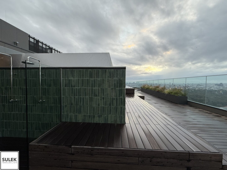 Genießen Sie exklusive Annehmlichkeiten wie den Rooftop-Pool mit Panorama-Sauna und Fitnessraum, Urban Gardening, Working Spaces, Kinder- und Jugendräume sowie Concierge-Service in der stilvollen Lobby. Die Nutzung des Pools und des Fitnessraum ist inklusive - die Nutzung der Sauna wird separat verrechnet (bis zu 2 Buchungen a 3 Stunden pro Woche sind möglich - € 8,60 pro Stunde - bis zu 2 Wochen im Vorhinein buchbar).