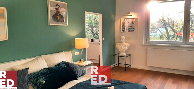 Über die ganze Breite der Wohnung liegen in Folge ein großes Wohn/Esszimmer mit offenen Kamin ca. 39,6m², ein separat begehbares Schlafzimmer mit 17,31m² und im Anschluss ein Kabinett mit 7,22m². Die Fenster dieser Räume gehen in den Garten und sind südwestseitig ausgerichtet. Also sehr sonnig. Das große Wohnzimmer kann ohne Probleme abgetrennt werden, so entsteht noch ein zusätzliches Zimmer, falls Bedarf ist.