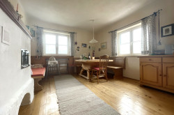 Die Wohnfläche von ca. 160 m² erstreckt sich über zwei Etagen und überzeugt mit einer durchdachten Raumaufteilung. Im Erdgeschoss erwartet Sie ein großzügiger Eingangsbereich, ein gemütliches Zimmer, eine traditionelle Stube sowie eine einladende Wohnküche mit einem wärmenden Holzofen. Ein modernes Badezimmer und ein Flur komplettieren das Erdgeschoss.