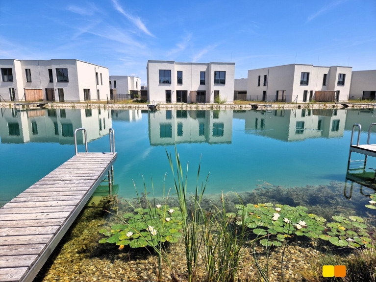 Sich den Traum vom Haus am See erfüllen und 365 Tage Urlaubsfeeling genießen. Das ist möglich im Sonnenweiher Grafenwörth, ca. 30 Fahrminuten von der Stadtgrenze Wiens entfernt, im Herzen der Region Wagram. Ein nachhaltiges, gut durchdachtes Gesamtkonzept, erstklassige Architektur, hochwertige Ausstattung und viel Grünraum fördern das besondere Lebensgefühl am Sonnenweiher. Die Verkehrsanbindung Richtung Wien und Krems (S5, Stockerauer Schnellstraße) sowie nach St. Pölten (S33) ist ausgezeichnet. In der Gemeinde Grafenwörth gibt es ausreichend Einkaufsmöglichkeiten für Güter des täglichen Bedarfs, Kinderbetreuungseinrichtungen und Schulen. In diesem wunderbaren, regionalen Umfeld eingebettet, entstehen an einem mäanderförmig angelegten, ca. 36.000 m² großen See in mehreren Bauabschnitten insges. 170 Wohnimmobilien der Sonderklasse in Form von Einfamilien-, Doppel- u. Reihenhäusern im Eigentum.