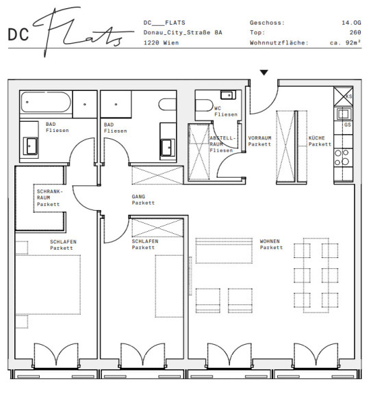 3-Zimmer-Wohnung mit 2 Bädern – Erstbezug in den DC Flats - zu mieten in 1220 Wien