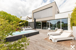 Diese moderne, architektonisch ansprechende Villa verbindet luxuriöses Wohnen mit natürlichem Flair. Hochwertige Materialien, großzügige Raumaufteilung und durchdachte Technik mache dieses Objekt zu einem wahren Wohntraum.