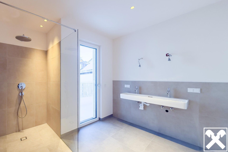Das Master-Schlafzimmer mit eigenem Bad inklusive Badewanne und Balkonzugang wird zur exklusiven Wohlfühloase. Ein weiteres Schlafzimmer mit eigenem Badezimmer (große Dusche und Schrankraum) bietet vielseitige Nutzungsmöglichkeiten – für Familie, Gäste oder Homeoffice. Vom Badezimmer aus gelangen Sie direkt auf den Balkon mit Blick in den Innenhof. Zusätzlich bieten Schrankraum und Flur Zugang zu einer kleineren Terrasse, die weiteren Freiraum und Ruhe schafft.