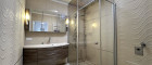 - modernes Badezimmer mit Regenwalddusche, Waschtisch und Waschmaschinenanschluss