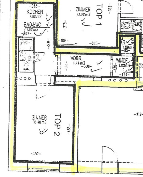 Wohnungsgrößen ca. 33,67 m2. Küche, 1 Zimmer, Bad/WC, Abstellraum und Vorraum. Kellerabteil inkl.