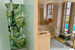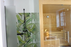 Ein zusätzliches Highlight ist die Sauna sowie der große Pool im Innenhof .