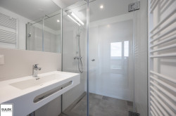 - Badewanne oder Dusche mit Glastrennwand, je nach Wohnung