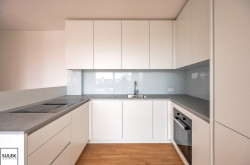 - grifflose Küche mit Unterschränken und raumhohen Oberschränken (inkl. Schatten Fuge)