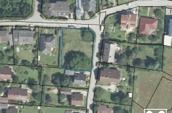 Baugrund mit 1.000m² Fläche, Eckgrundstück und leichte Hanglage.