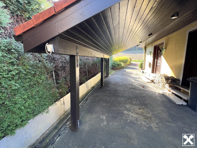 Ca. 125 m² Wohnfläche, zwei Terrassen, Kachel- & Holzofen, Brunnen, Geräteschuppen, Carport – ideal als Haupt- oder Zweitwohnsitz. Inventar inklusive!