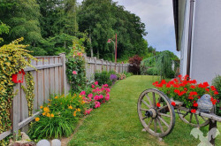 Besonders hervorzuheben ist der stilvolle Weinkeller, der nicht nur zur Lagerung edler Tropfen dient, sondern auch für gesellige Abende ein echtes Highlight darstellt. Der herrlich angelegte Innenhof mit Gartenlaube sowie der weitläufige, liebevoll gestaltete Garten laden zum Entspannen ein.