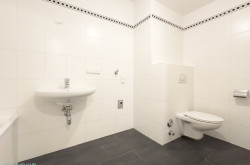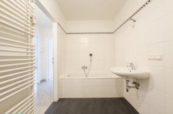- Badezimmer mit Badewanne, WC, Waschbecken, Waschmaschinenanschluss