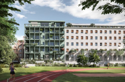 Das bestehende Gebäudeensemble rund um das Funkhaus wird um einen Holz-Hybrid-Bau bereichert!