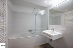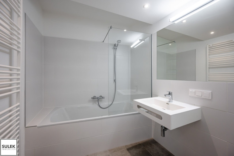 - Badewanne oder Dusche mit Glastrennwand, je nach Wohnung
