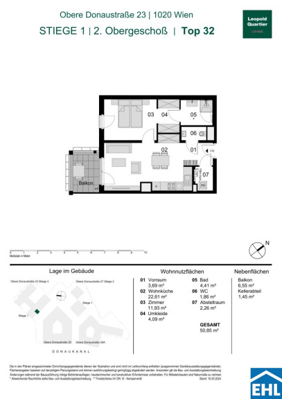 Eingebettet zwischen dem Donaukanal, dem grünen Augarten und dem pulsierenden 1. Wiener Gemeindebezirk vereint das LeopoldQuartier Natur, Urbanität und höchste Lebensqualität. Stephansdom, Kärntner Straße und die kulinarischen Hotspots des Servitenviertels sind fußläufig erreichbar.