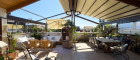 Terrassenüberdachung: Die Terrasse ist mit einer hochwertigen Faltmarkise ausgestattet, die sogar Schneelasten standhält und im Gebäude mitversichert ist.