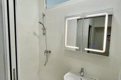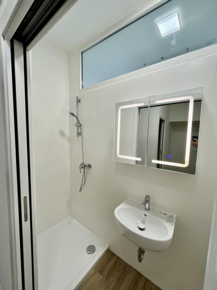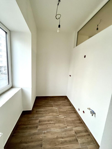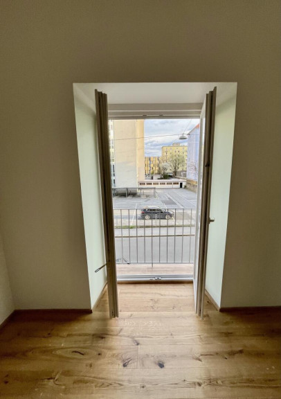 Wohn-Schlafraum mit französischen Balkon, offen zur Arbeitsküche mit Fenster (die Küche wurde bestellt), neue Fenster und Türen, Infrarot Deckenheizung.