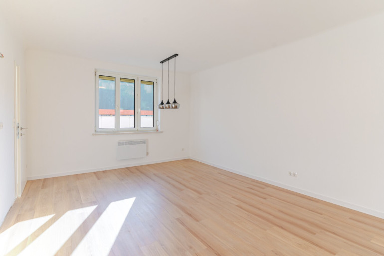 Wohnzimmer mit Küche – hell, freundlich und mit Platz für Couch & Esstisch (Kücheneinbau erfolgt im Dezember)