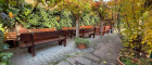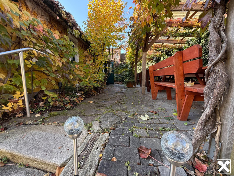- Begrünter Garten im hinteren Bereich, Schanigarten vor dem Gebäude