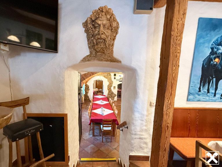 - Vollwertige Weinstube/Gasthaus mit großzügigem Ausschankbereich, Sitzmöglichkeiten indoor oberhalb und links von diesem. Heizung erfolgt übrigens bereits via Fußboden!