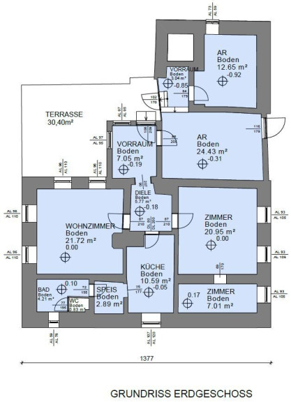 Das Erdgeschoss (ca. 81 m²) unterteilt sich in: