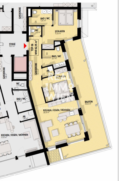 Die Wohnung verfügt über 3 geräumige Zimmer, so dass Sie ausreichend Platz für sich und Ihre Lieben haben. Der offene Wohn- und Essbereich ist der perfekte Ort, um sich nach einem langen Tag zu entspannen und den Blick auf die umliegenden Berge zu genießen. Die großen Fenster lassen viel natürliches Licht herein und verleihen der Wohnung ein helles und einladendes Ambiente. Vom Wohnbereich aus haben Sie auch Zugang zu einem gemütlichen Balkon, auf dem Sie die frische Bergluft und die atemberaubende Aussicht genießen können.