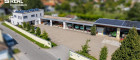 Im Mittelpunkt steht ein modernes Bürogebäude mit einer Wohneinheit und flexibel nutzbaren Räumen, ergänzt durch großzügige Lager- und Wirtschaftsflächen.