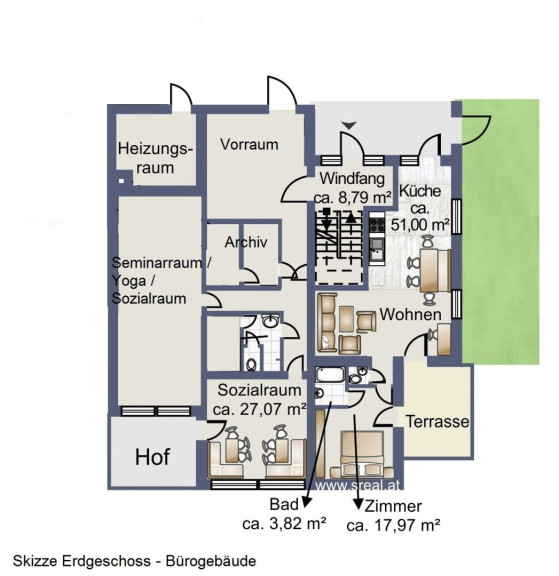 - Separate Wohneinheit im Bürogebäude – ideal für Mitarbeiter oder zur Vermietung