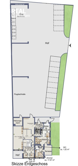 - Umfangreiche Lager- und Wirtschaftsflächen: Maschinenhalle, Flugdachhallen