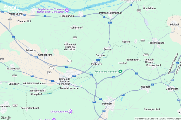 Die Liegenschaft befindet sich in Pachfurth, direkt neben Bruck an der Leitha und nur wenige Minuten von der Autobahn A4 - dadurch sind Wien, der Flughafen Schwechat, Bratislava sowie Ungarn schnell erreichbar.