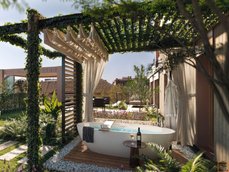 Das chique Terrassenhaus kombiniert eine nachhaltige Bauweise (CREE-Bauweise) mit moderner Architektur und großzügigen Freiflächen.