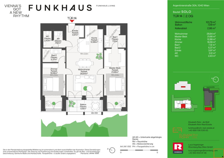 Die top14 liegt im 2.Obergeschoß und verfügt über einen süd-seitigen Balkon (ca. 7,09m²).