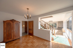 Zur unbefristeten Miete gelangt dieses Einfamilienhaus auf einem wunderschönen, begrünten Grundstück in absoluter Ruhelage inmitten eines Naturschutzgebiets am Stadtrand Wiens. Der Garten ist ca. 650m² groß und größtenteils uneinsichtig, die Privatsphäre ist somit garantiert. Das Wohnhaus bietet auf insgesamt rd. 300m² und zwei Stockwerken (+ geräumiges Kellergeschoss) einen umfassenden Wohnkomfort.